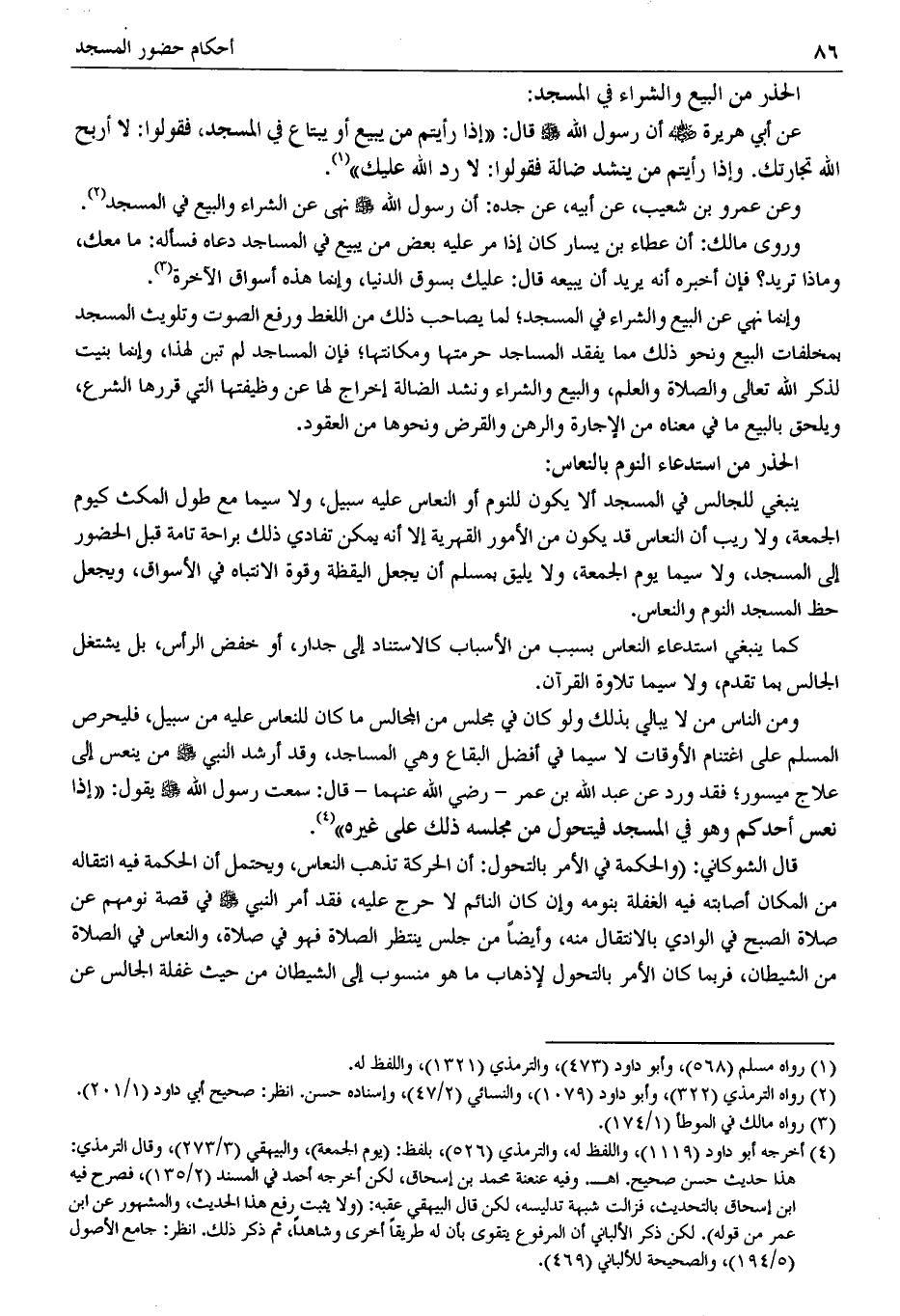 عن أبي هريرة -رضي الله عنه- أن رسول الله -صَلَّى اللَّهُ عَلَيْهِ وَسَلَّمَ- قال: "إذا رأيتم من يبيع أو يبتاع في المسجد، فقولوا: لا أربح الله تجارتك. وإذا رأيتم من ينشد ضالة فقولوا: لا رد الله عليك" (¬1).