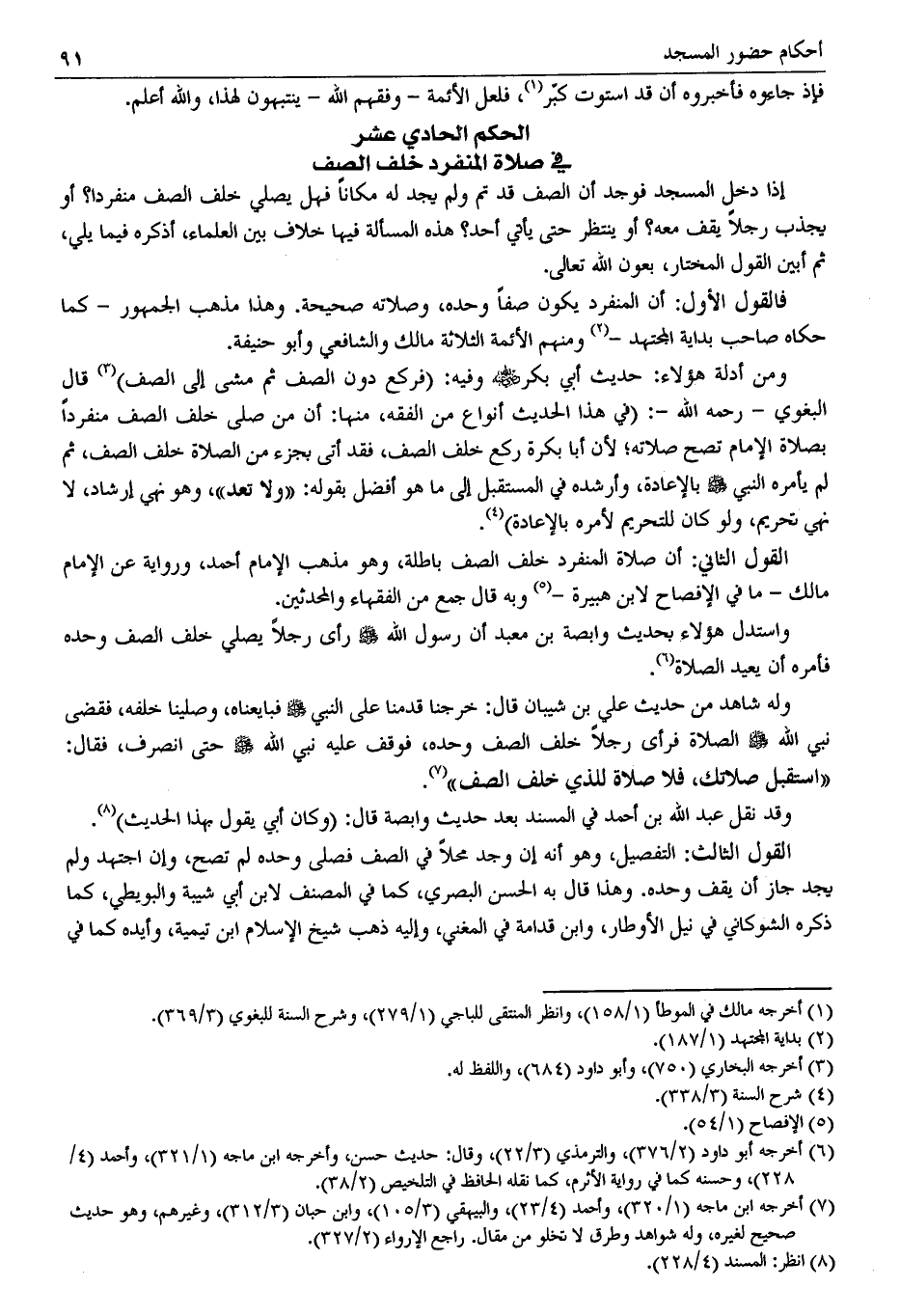 الحكم الحادي عشر في صلاة المنفرد خلف الصف