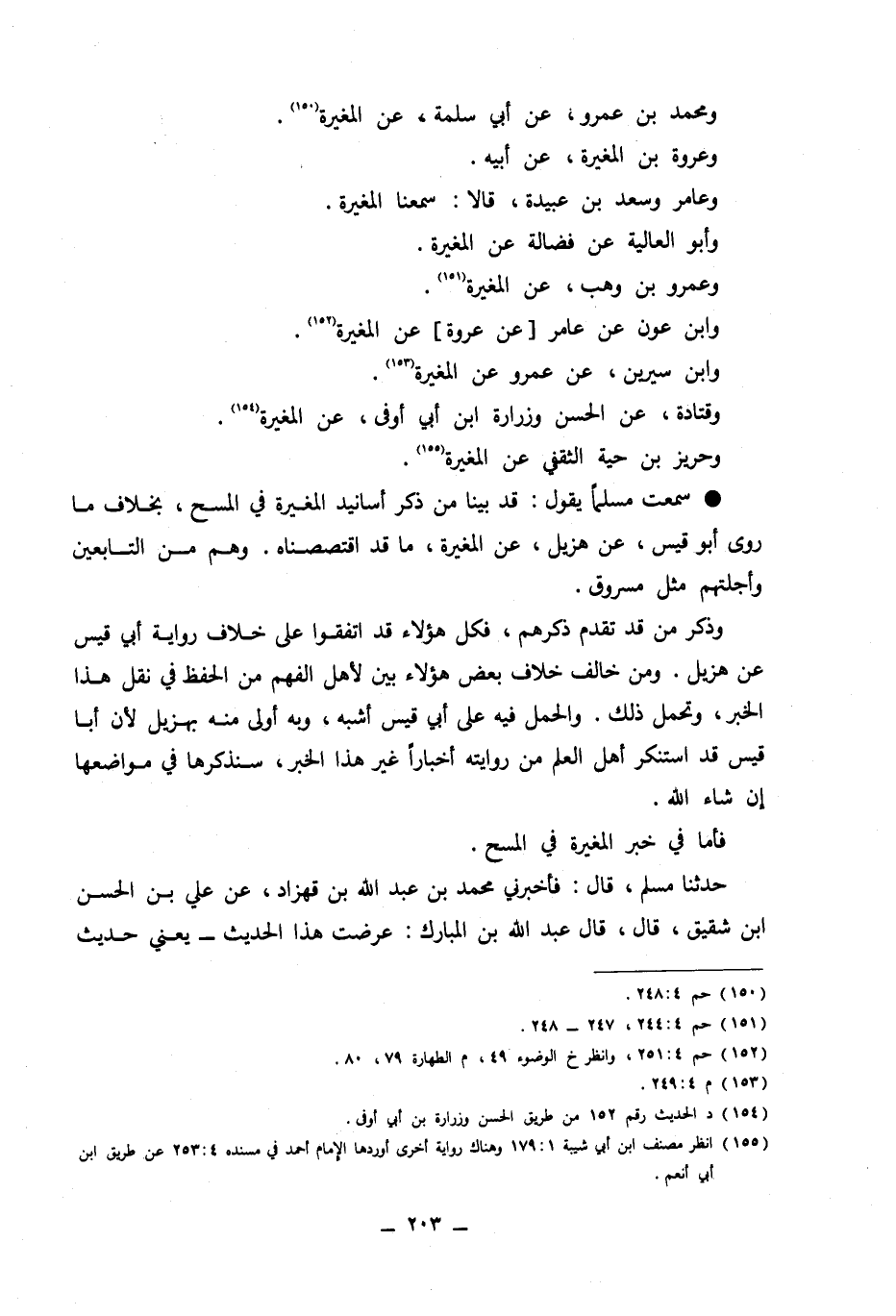 وَمُحَمّد بن عَمْرو عَن أبي سَلمَة عَن الْمُغيرَة وَعُرْوَة بن الْمُغيرَة عَن أَبِيه وعامر وَسعد بن عُبَيْدَة قَالَا سمعنَا الْمُغيرَة وَأَبُو الْعَالِيَة عَن فضَالة عَن الْمُغيرَة وَعَمْرو بن وهب عَن الْمُغيرَة وَابْن عون عَن عَامر عَن عُرْوَة عَن الْمُغيرَة وَقَتَادَة عَن الْحسن وزرارة ابْن أبي أوفى عَن الْمُغيرَة وحريز بن حَيَّة الثَّقَفِيّ عَن الْمُغيرَة