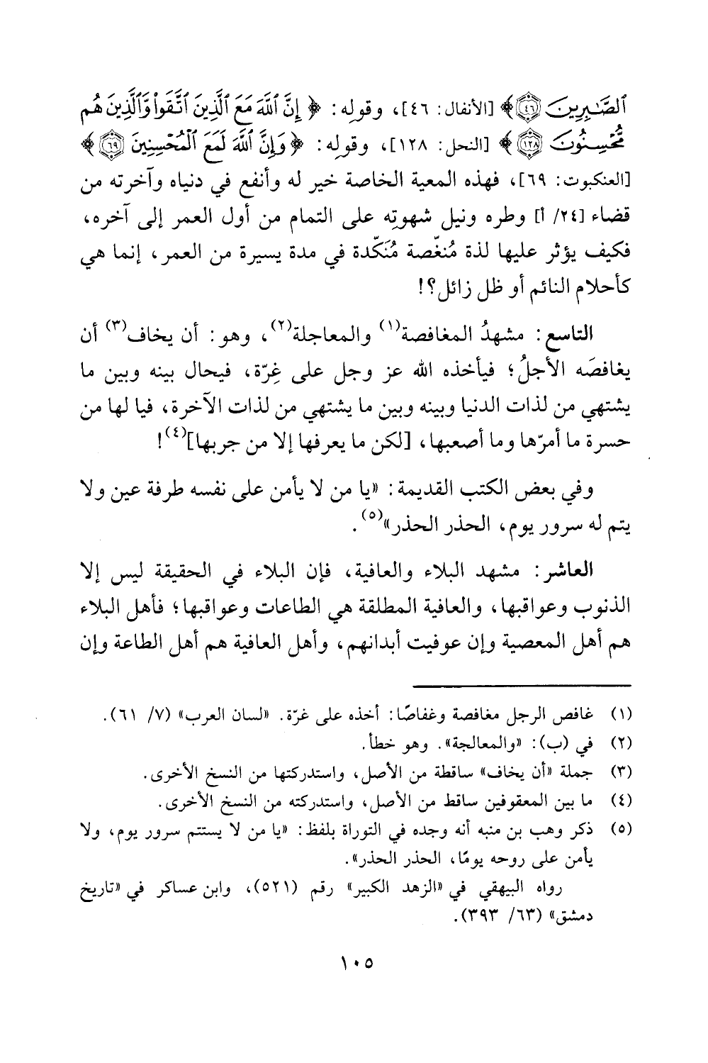 التاسع: مشهد المغافصة (1) والمعاجلة (2)، وهو: ان يخاف (3) ا ن