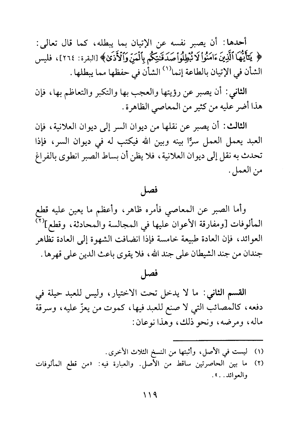 كتاب عدة الصابرين وذخيرة الشاكرين - ط عالم الفوائد (اسم الجزء: 1)