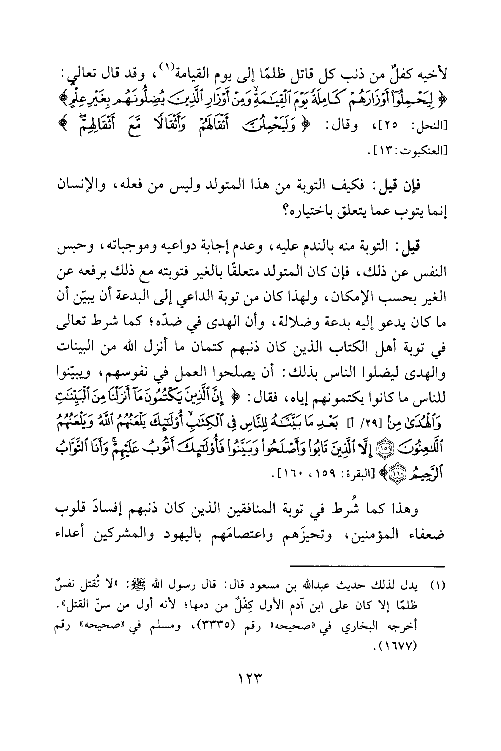 يدل لذلك حديث عبدالله بن مسحود قال: قال رسول الله مج! يد: "لا تقتل نفس!