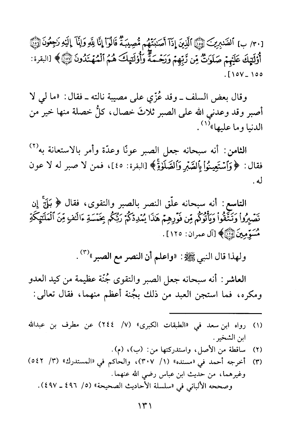 ولهذا قال النبي ع! يم: " واعلم أن النصر مع الصبر" (3).