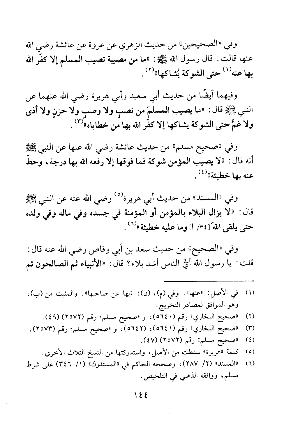 ولا غئم حتى الشوكة يشاكها الا كفر الله بها من خطاياه) أ (3).