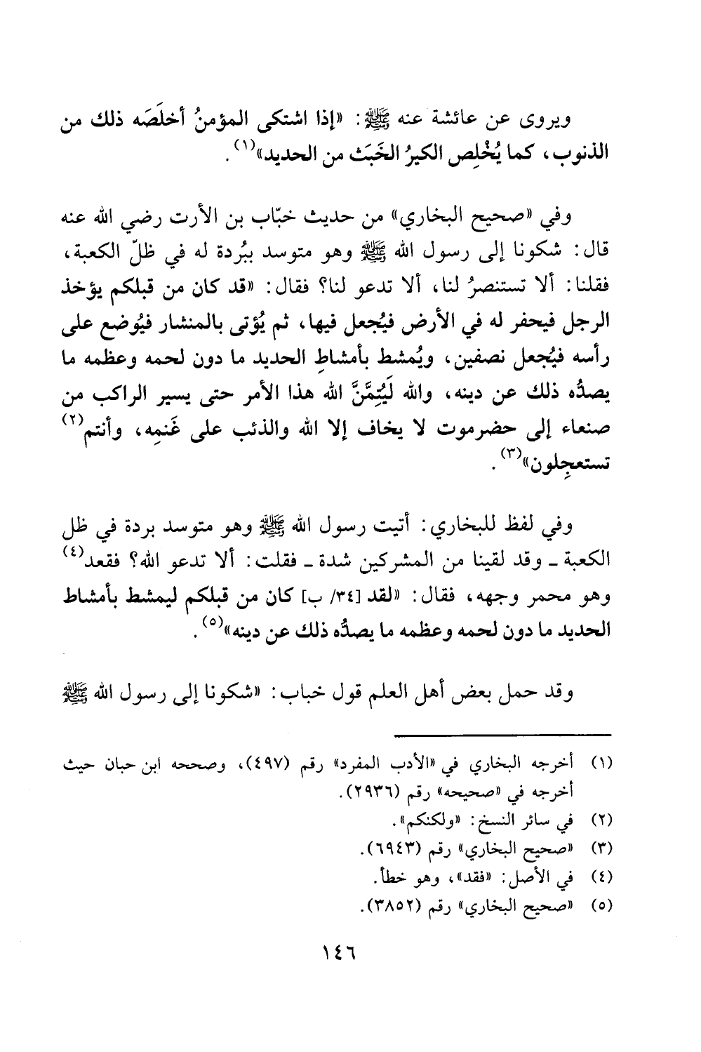 فقلنا: ألا تستنصر لنا، الا تدعو لنا؟ فقال: "قد كان من قبلكم يؤخذ