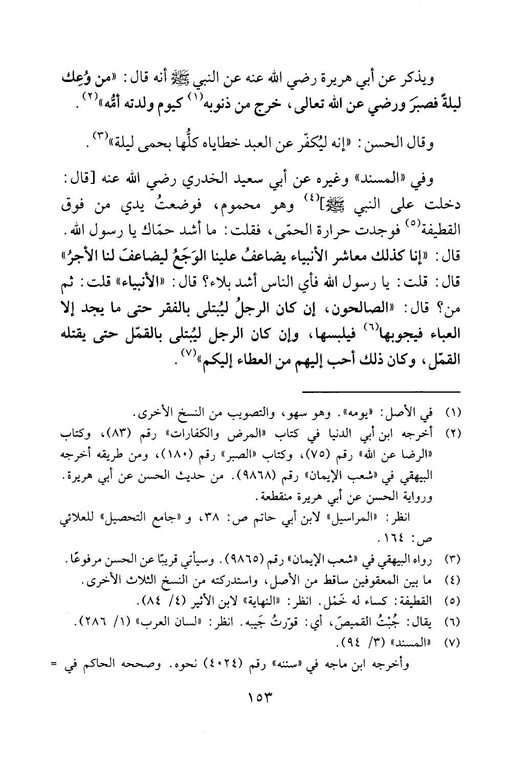 وقال الحسن: "إنه ليكفر عن العبد خطاياه كلها بحمى ليلة " (3).