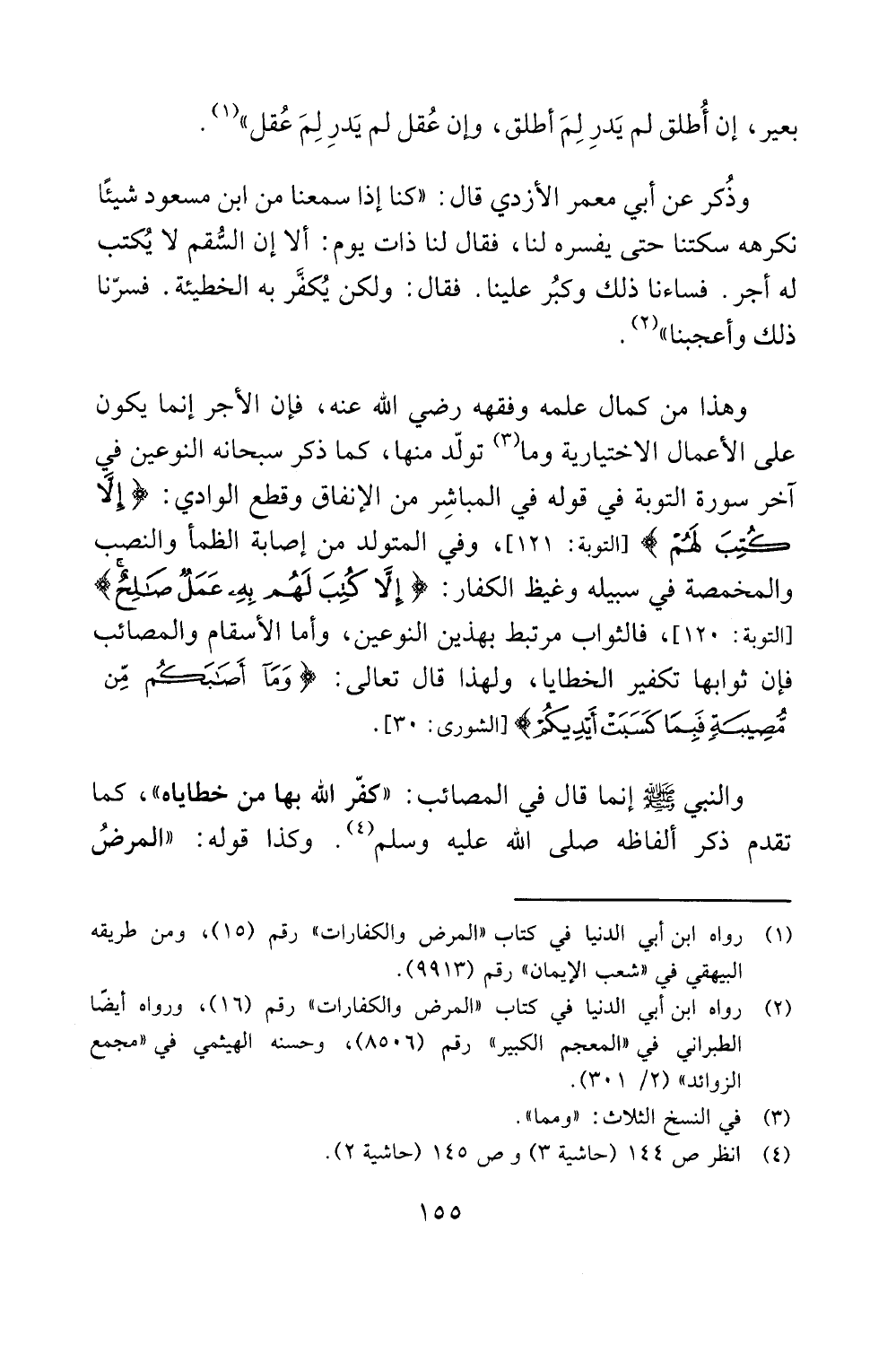 وهذا من كمال علمه وفقهه رضي الله عنه، فان الاجر إنما يكون