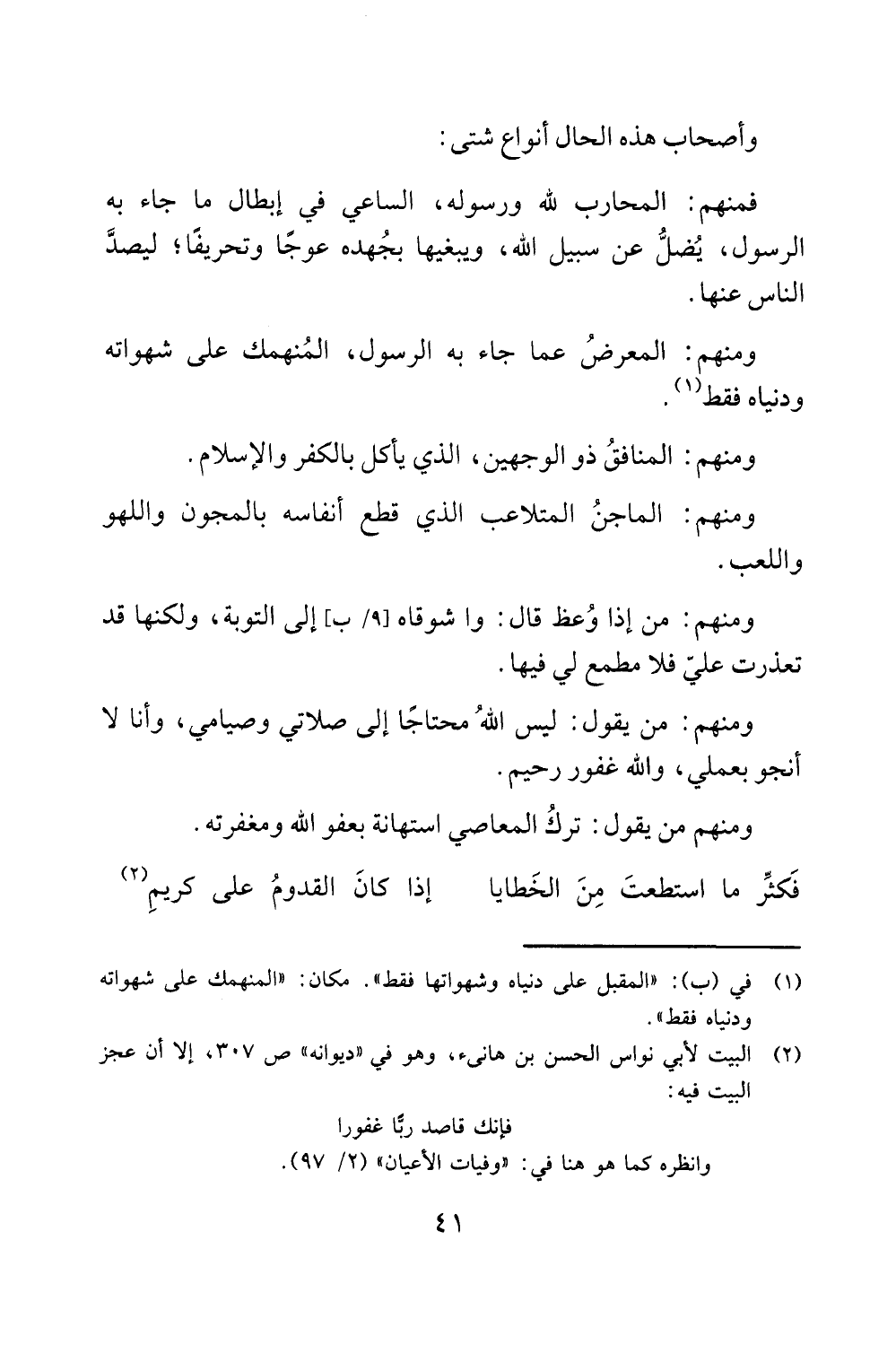 وأصحاب هذه الحال أنواع شتى: