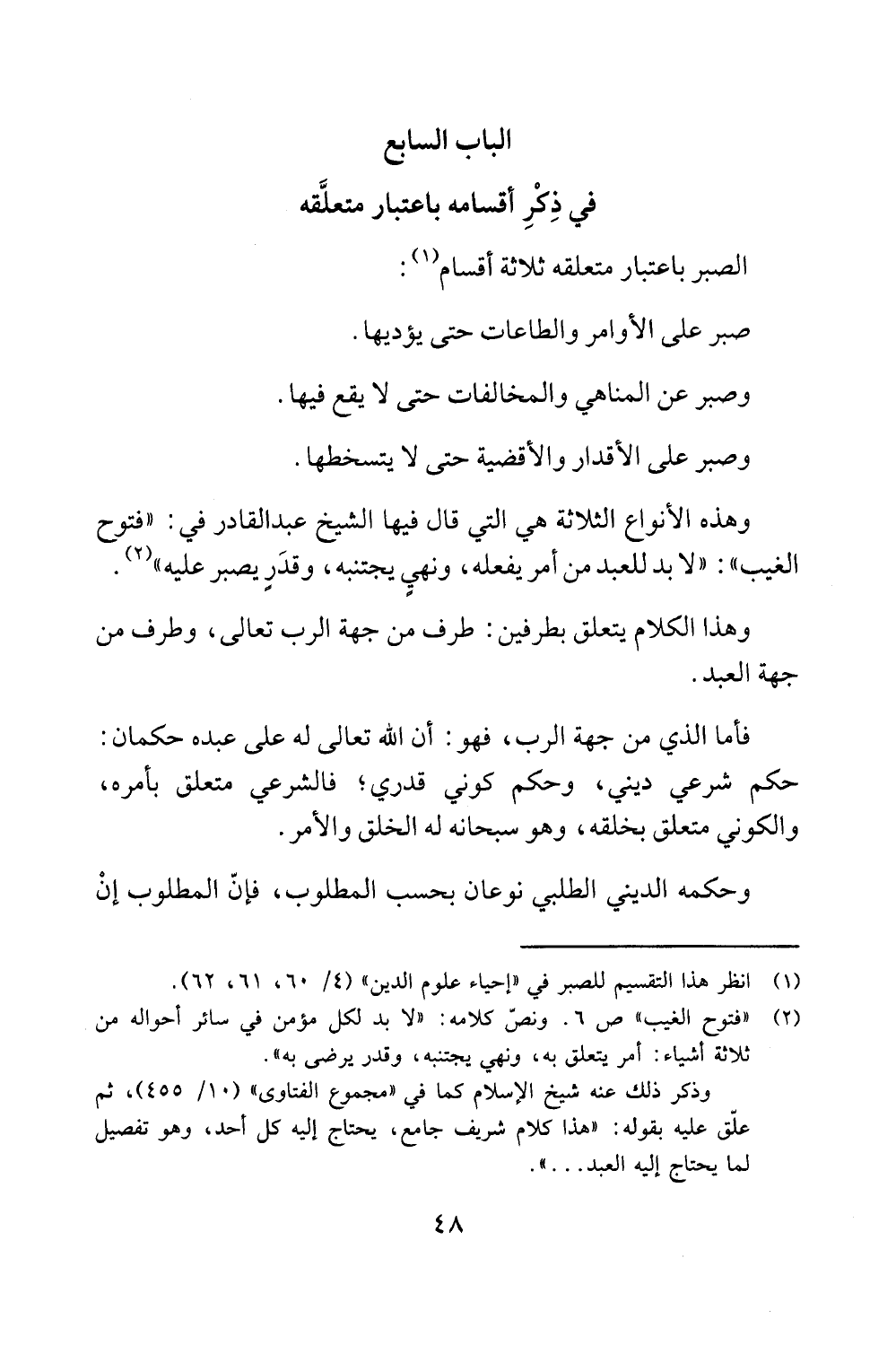 الصبر باعتبار متعلقه ثلاثة أقسام (1):