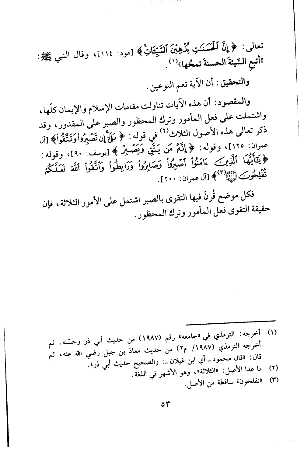 فكل موضع قرن فيها التقوى بالصبر اشتمل على الامور الثلاثة، فإن