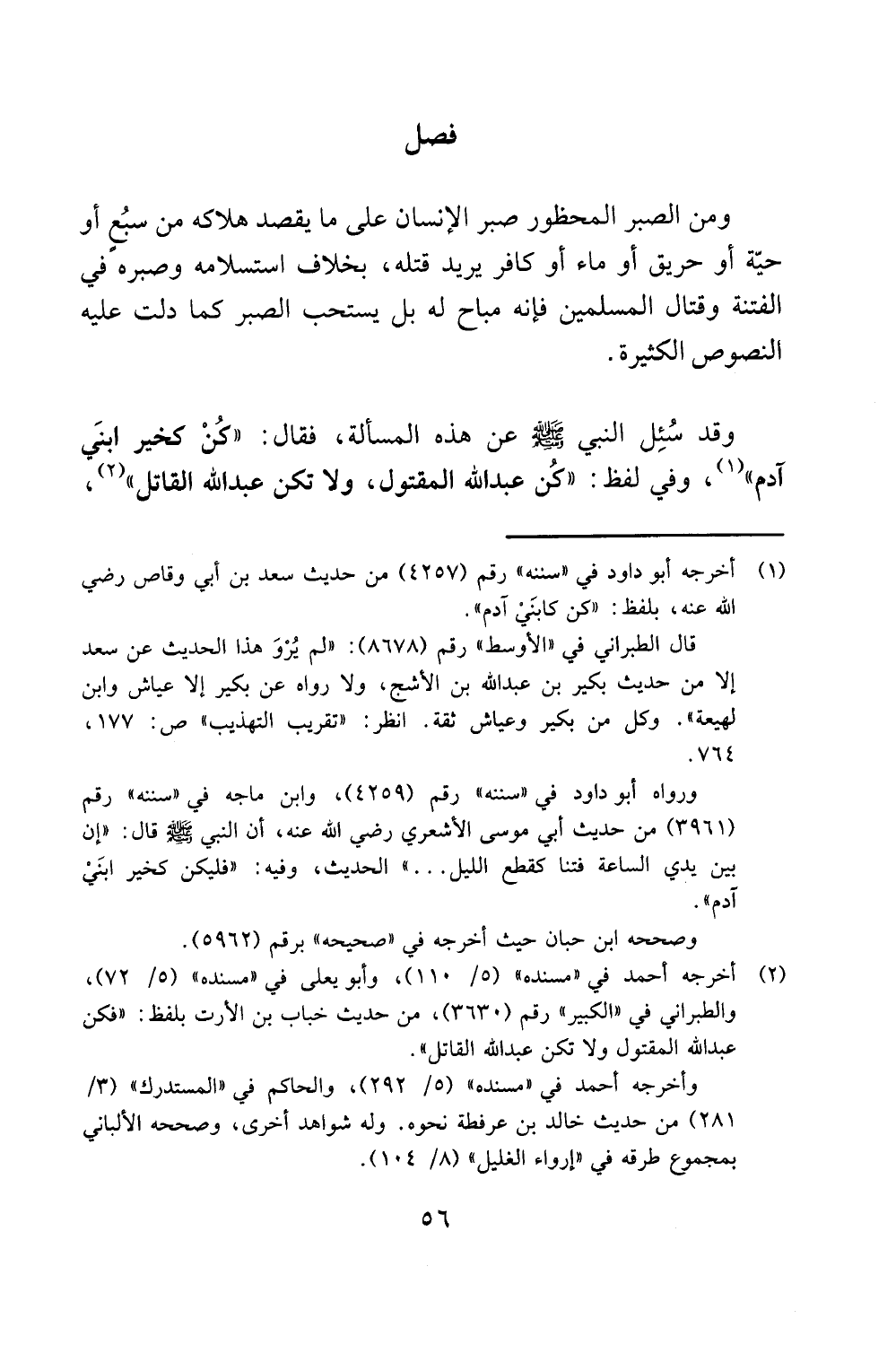 الفتنة وقتال المسلمين فانه مباج له بل يستحب الصبر كما دلت عليه