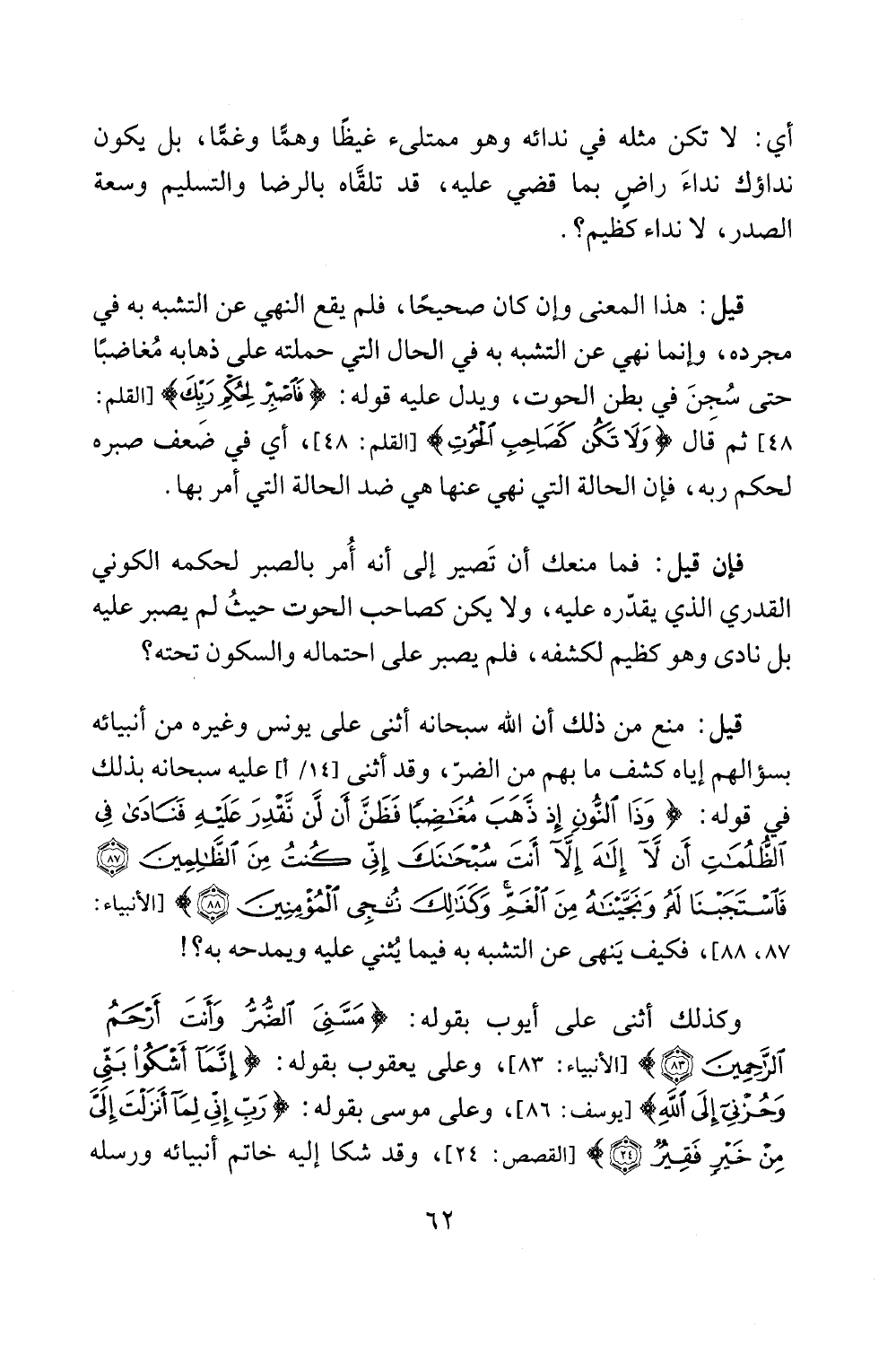 48] ثم قال < ولاتكن كصاحب اقىت > [القلم: 48]، أي في ضعف صبره