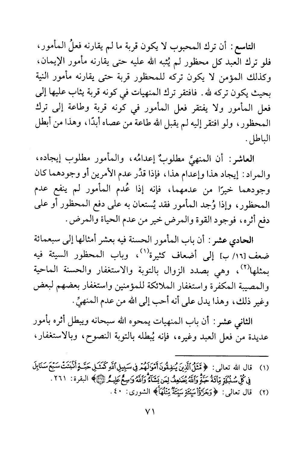 التاني عشر: ان باب المنهيات يمحوه الله سبحانه ويبطل اثره بأمور