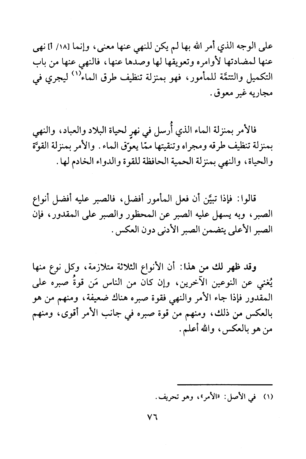 قالوا: فإذا تبين أن فعل المأمور أفضل، فالصبر عليه أفصل أنواع