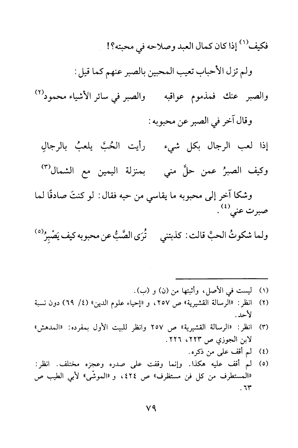 ] نظر: "الرسالة القشيرية " ص 257، و "إحياء علوم الدين " (4/ 69) دون نسبة