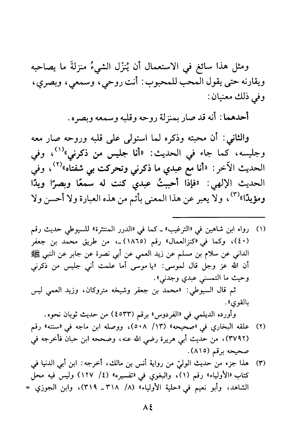 ويقارنه حتى يقول المحب للمحبوب: أنت روحي، وسمعي، وبصري،