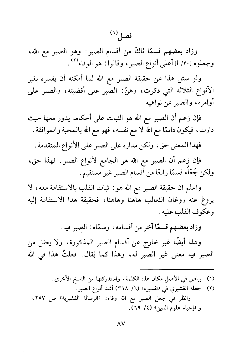 وانظر في جعل الصبر مع الله وفاء: "الرسالة القشيرية" ص 257،