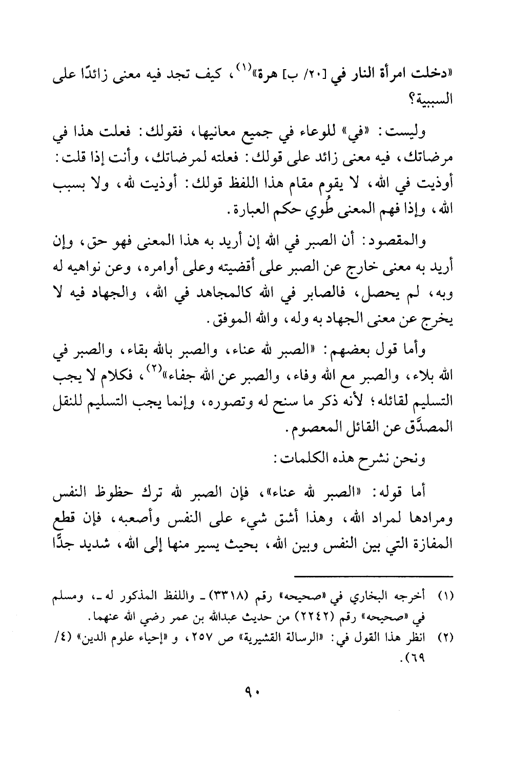 والمقصود: أن الصبر في الله إن أريد به هذا المعنى فهو حق، وإن