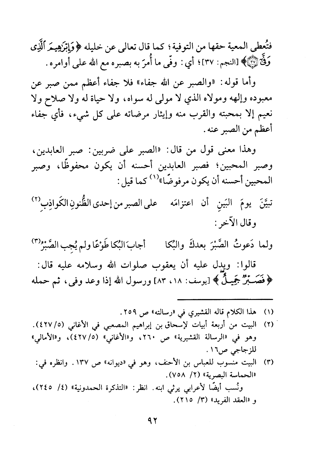 وأما قوله: "والصبر عن الله جفاء" فلا جفاء أعظم ممن صبر عن