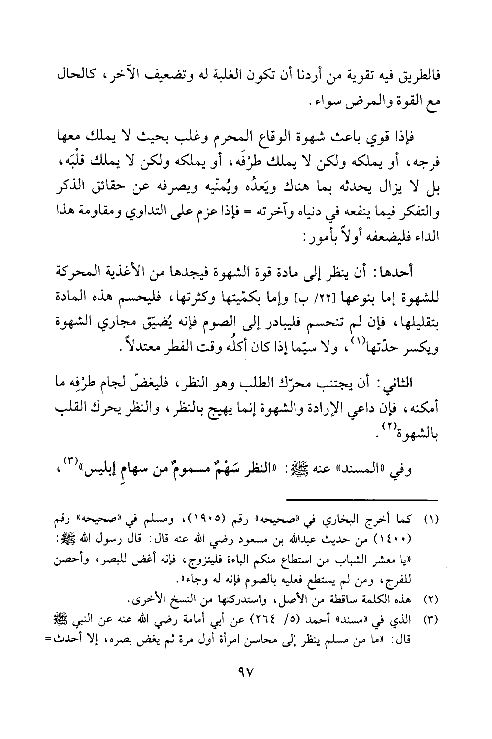 وفي " المسند" عنه لمجيم: "النظر سهم مسموم من سهام إبليس " (3)،