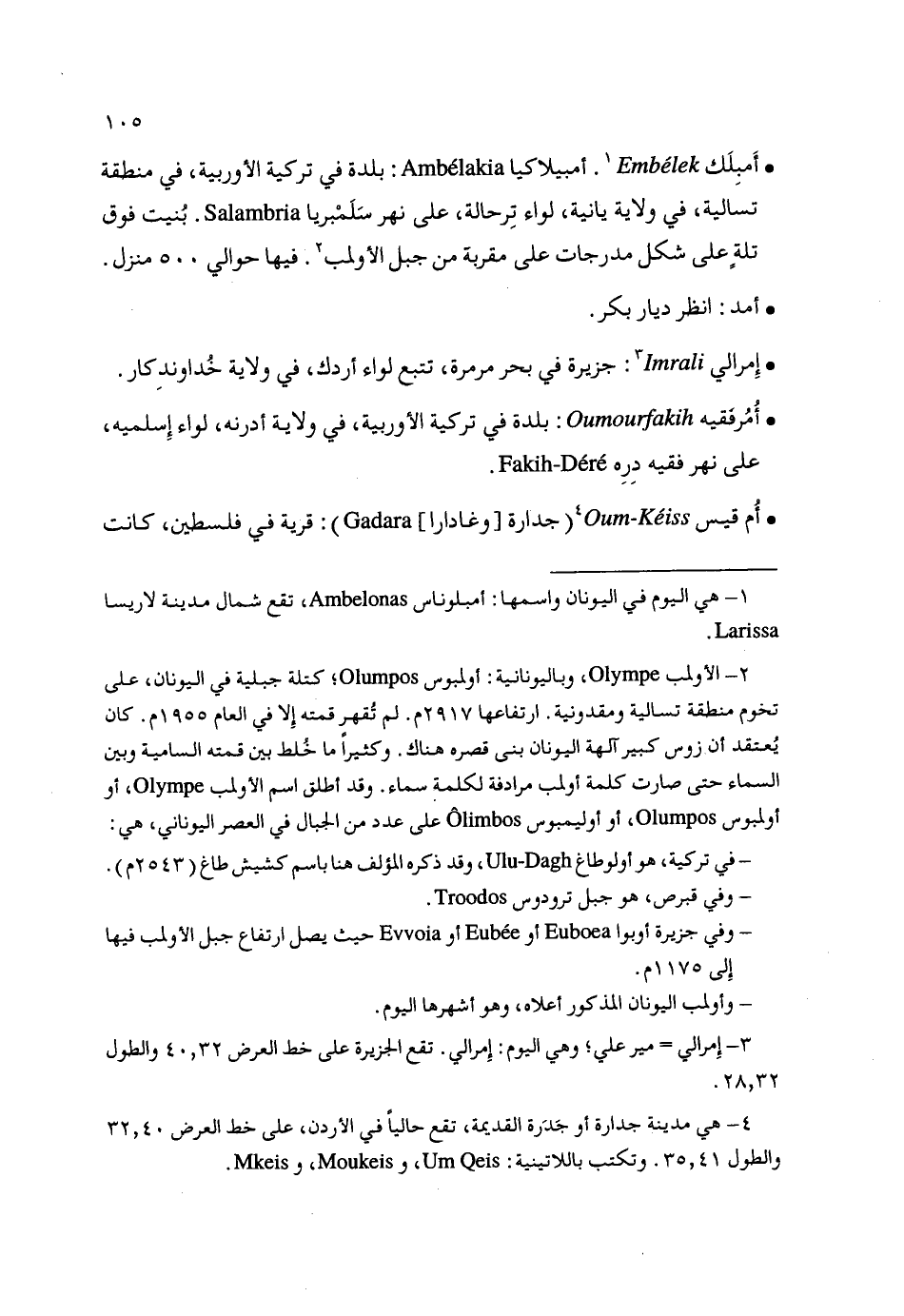 (1) هي اليوم في اليونان واسمها: أمبلوناس، تقع شمال مدينة لاريسا.