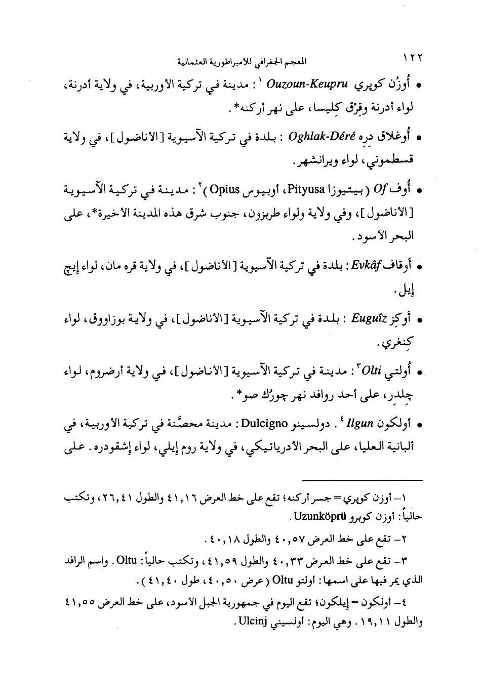 (1) أوزن كوپري جسر أركنه تقع على خط العرض 16، 41والطول 41، 26، وتكتب حاليا: أوزن كوبرو.