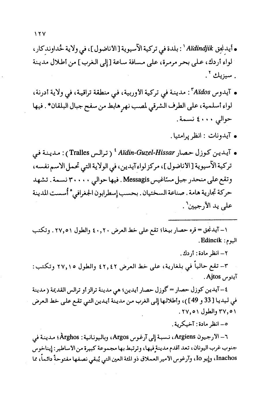 (4) آيدين كوزل حصار گوزل حصار أيدين هي مدينة ترالز أو ترالس القديمة (مدينة في ليديا [33و 49])، وأطلالها إلى الغرب من مدينة أيدين التي تقع على خط العرض 51، 37والطول 51، 27.