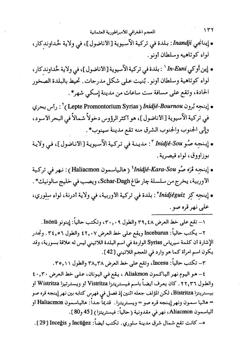 (4) هو اليوم نهر ألياكمون، يقع في اليونان، على خط العرض 30، 40 والطول 36، 22. كان يعرف أيضا باسم فيستريتزا أو ويسترتيزا أو بيستريتزا، لكن المؤلف جعله اثنين إذ فصل في فهرس كتابه بين نهر إينجه قره صو هاليا سمون ونهر إينجه قره صو ويستريتزا. قديما جدا: هالياسمون أو ألياسمون، نهر في مقدونية (حاليا: فيستريتزا) [45و 80].
