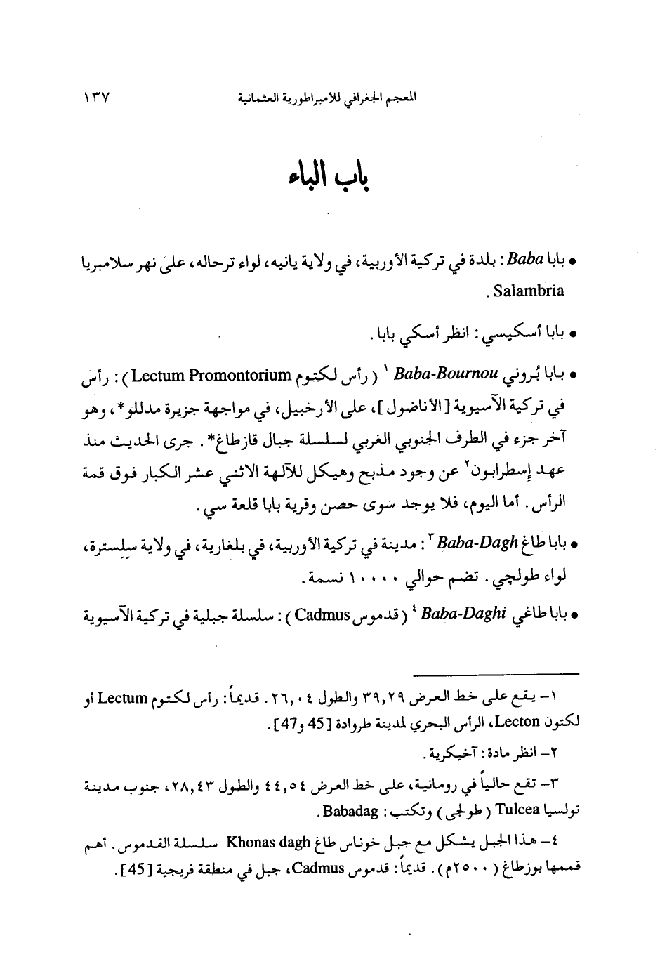 (1) يقع على خط العرض 29، 39والطول 04، 26. قديما: رأس لكتوم أو لكتون، الرأس البحري لمدينة طروادة [45، 47].