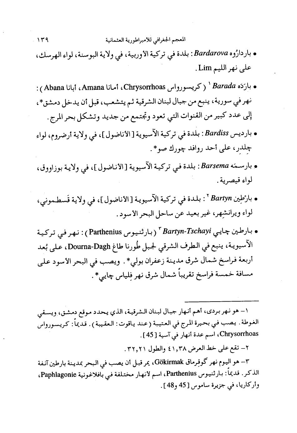 (3) هو اليوم نهر گوقرماق، يمر قبل أن يصب في البحر بمدينة بارطين آنفة الذكر. قديما: بارثنيوس، اسم لأنهار مختلفة في بافلاغونية، وأركاريا، في جزيرة ساموس [45و 48].