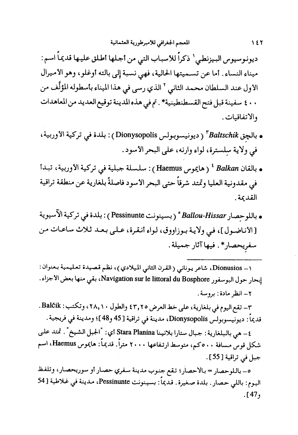 (4) هي بالبلغارية: جبال ستارا بلانينا أي: = الجبل الشيخ =. تمتد على شكل قوس مسافة 500كم، متوسط ارتفاعها 2000مترا. قديما: هايموس، اسم جبل في تراقية [55].