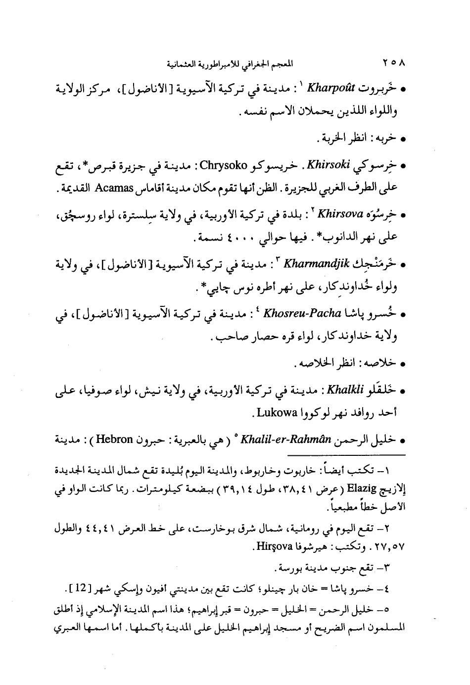 (1) تكتب أيضا: خاربوت وخاربوط، والمدينة اليوم بليدة تقع شمال المدينة الجديدة إلازيچ (عرض 41، 38، طول 14، 39) ببضعة كيلومترات. ربما كانت الواو في الأصل خطأ مطبعيا.
