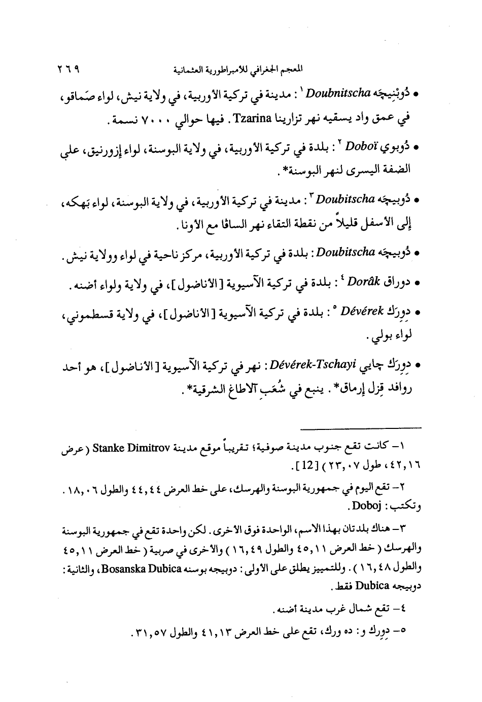 (3) هناك بلدتان بهذا الاسم، الواحدة فوق الأخرى. لكن واحدة تقع في جمهورية البوسنة والهرسك (خط العرض 11، 45والطول 49، 16) والأخرى في صربية (خط العرض 11، 45 والطول 48، 16). وللتمييز يطلق على الأولى: دوبيجه بوسنه، والثانية: