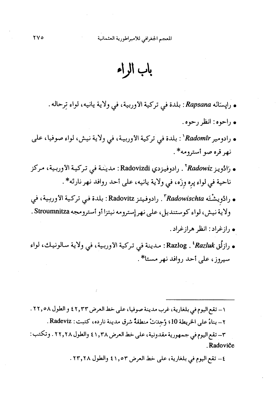 (1) تقع اليوم في بلغارية، غرب مدينة صوفيا، على خط العرض 33، 42والطول 58، 22.