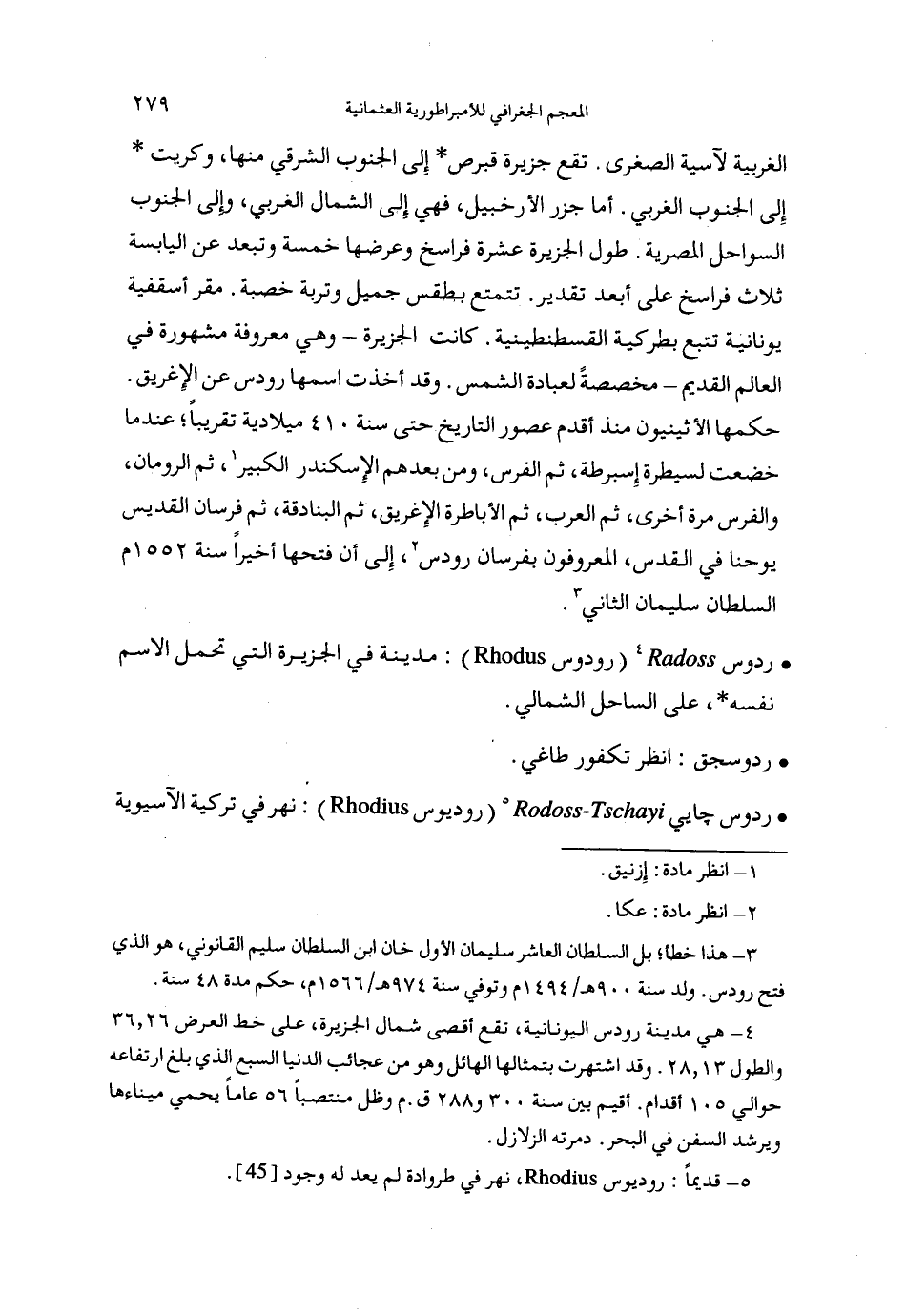 (3) هذا خطأ بل السلطان العاشر سليمان الأول خان ابن السلطان سليم القانوني، هو الذي فتح رودس. ولد سنة 900هـ / 1494م وتوفي سنة 974هـ / 1566م، حكم مدة 48سنة.