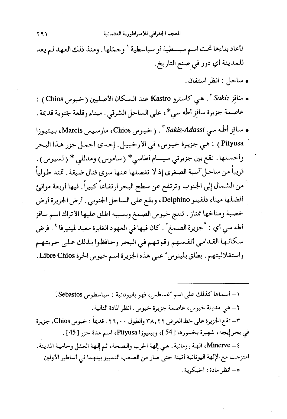هي جزيرة خيوس، في الأرخبيل. إحدى أجمل جزر هذا البحر وأحسنها. تقع بين جزيرتي سيسام أطاسي * (ساموس) ومدللي * (لسبوس).