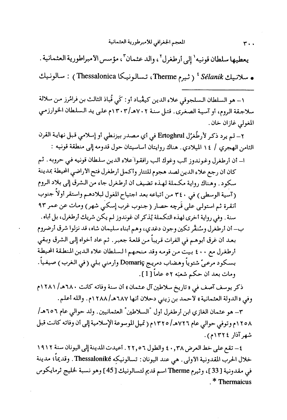 (3) هو عثمان الغازي ابن أرطغرل أول = السلاطين = العثمانيين. ولد حوالي عام 656هـ / 1258م وتوفي حوالي عام 726هـ / 1325م (تميل الموسوعة الإسلامية إلى أن وفاته كانت قبل شهر آذار 1324م).