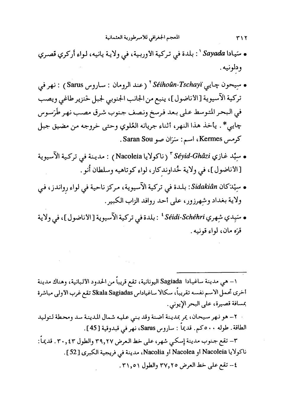 (2) هو نهر سيحان، يمر بمدينة أضنة وقد بني عليه شمال المدينة سد ومحطة لتوليد الطاقة. طوله 500كم. قديما: ساروس، نهر في قبدوقية [45].
