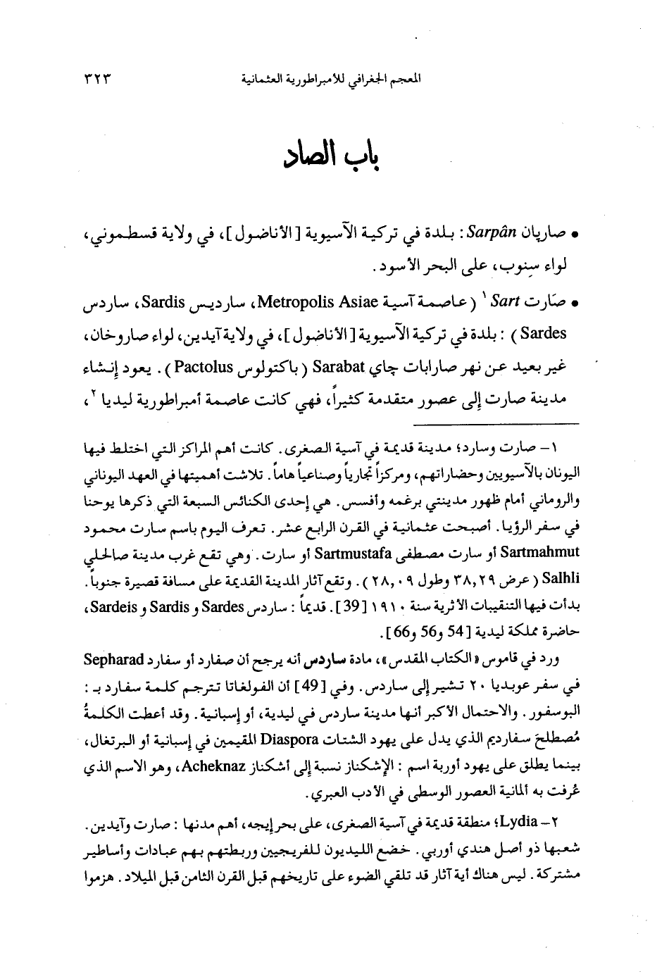 ورد في قاموس «الكتاب المقدس»، مادة ساردس أنه يرجح أن صفارد أو سفارد في سفر عوبديا 20تشير إلى ساردس. وفي [49] أن الفولغاتا تترجم كلمة سفارد ب: