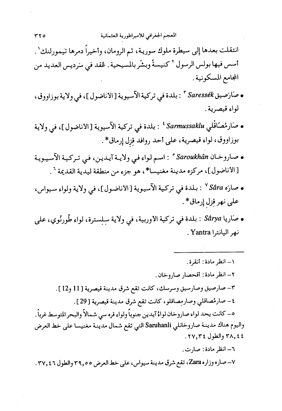 (7) صاره وزاره، تقع شرق مدينة سيواس، على خط العرض 55، 39والطول 46، 37.