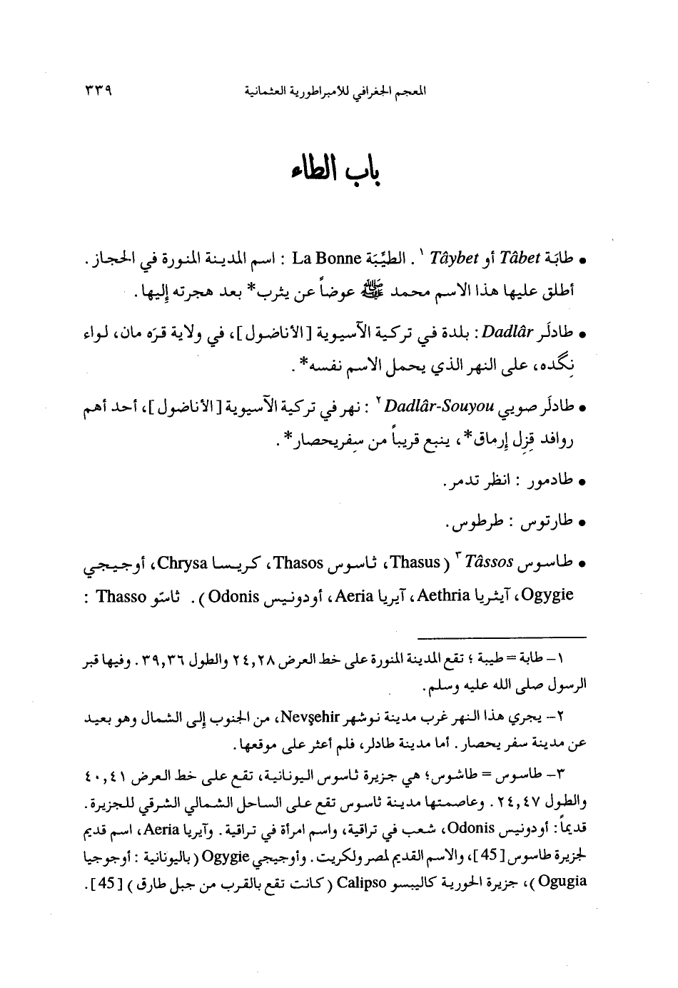 (3) طاسوس طاشوس هي جزيرة ثاسوس اليونانية، تقع على خط العرض 41، 40 والطول 47، 24. وعاصمتها مدينة ثاسوس تقع على الساحل الشمالي الشرقي للجزيرة.