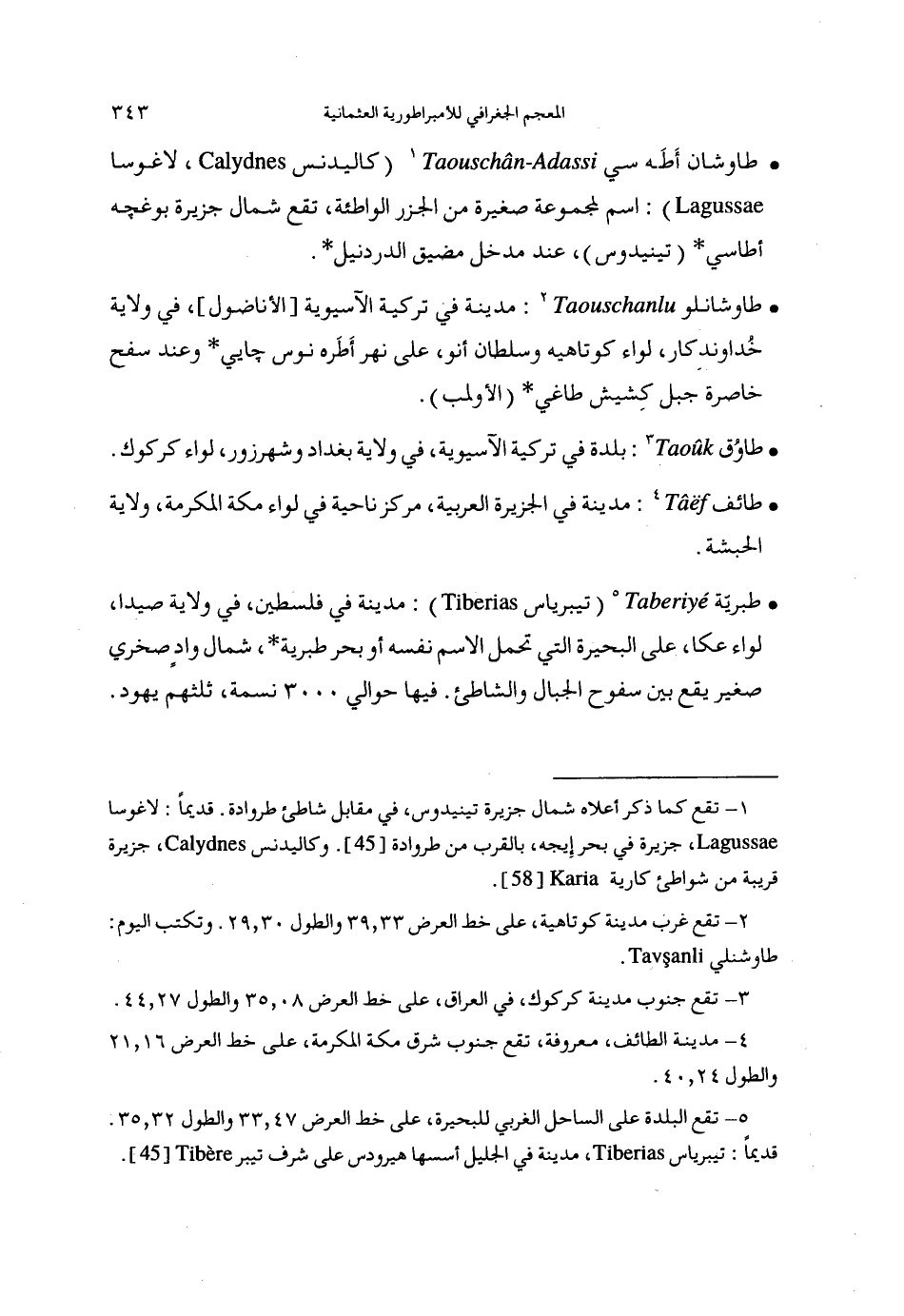 (1) تقع كما ذكر أعلاه شمال جزيرة تينيدوس، في مقابل شاطئ طروادة. قديما: لاغوسا، جزيرة في بحر إيجه، بالقرب من طروادة [45]. وكاليدنس، جزيرة قريبة من شواطئ كارية [58].