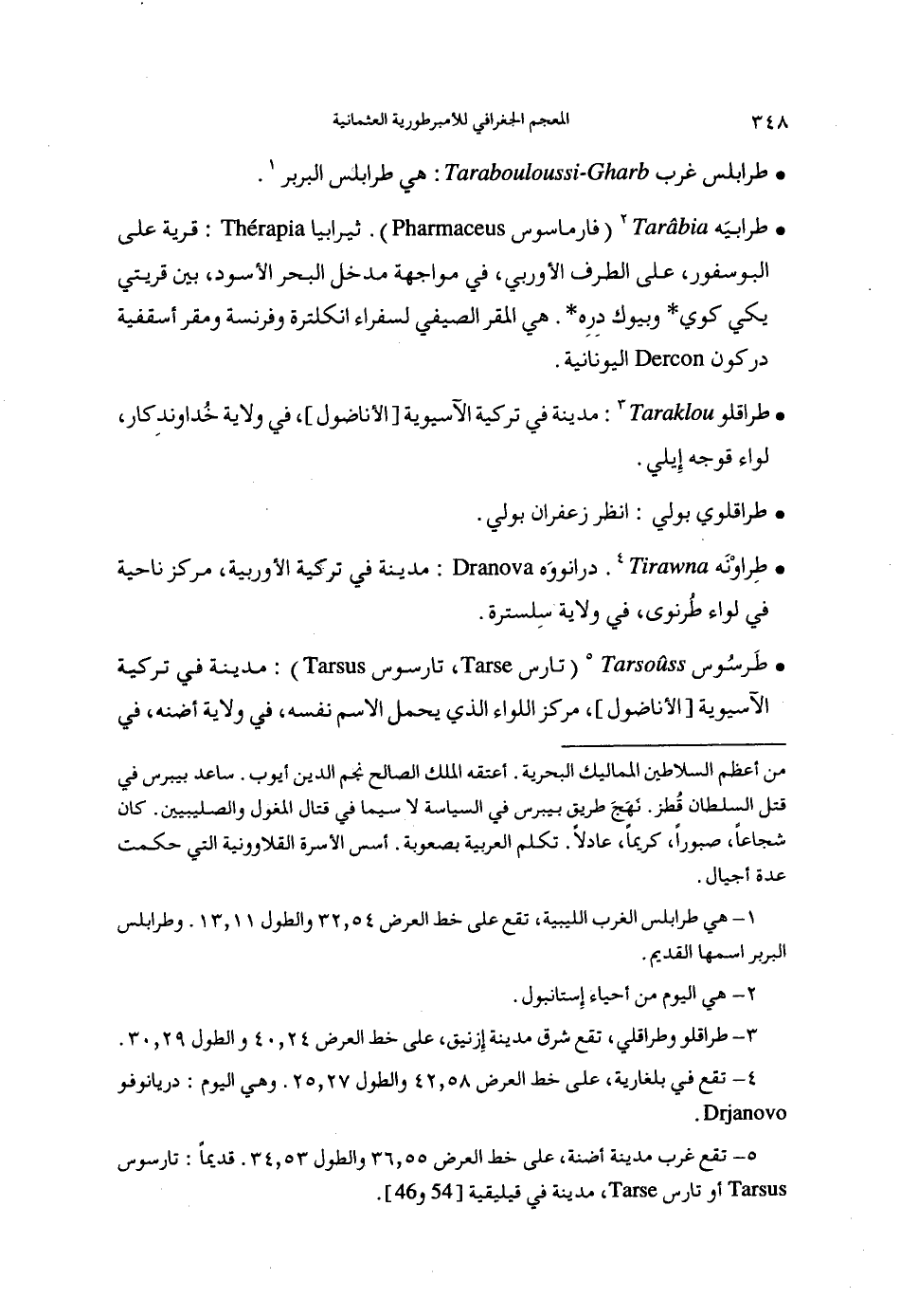 (5) تقع غرب مدينة أضنة، على خط العرض 55، 36والطول 53، 34. قديما: تارسوس أو تارس، مدينة في قيليقية [54و 46].