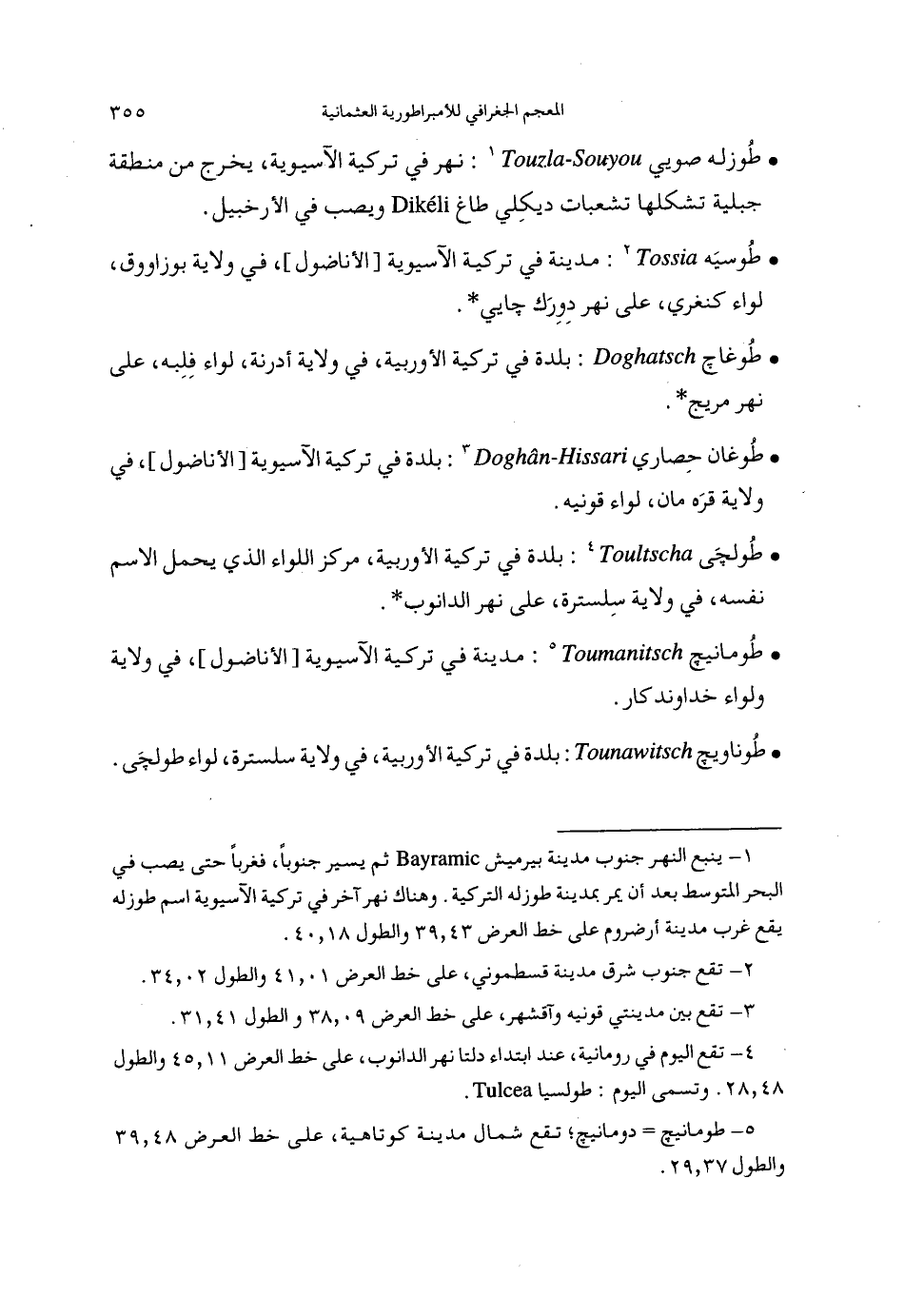(4) تقع اليوم في رومانية، عند ابتداء دلتا نهر الدانوب، على خط العرض 11، 45والطول 48، 28. وتسمى اليوم: طولسيا.