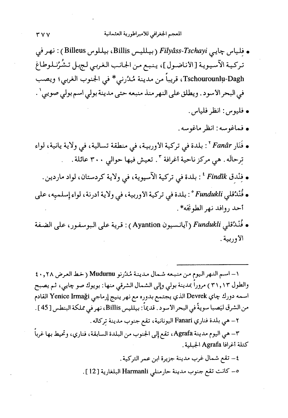 (1) اسم النهر اليوم من منبعه شمال مدينة مدرنو (خط العرض 28، 40 والطول 13، 31) مرورا بمدينة بولي وإلى الشمال الشرقي منها: بويوك صو چايي، ثم يصبح اسمه دورك چاي الذي يجتمع بدوره مع نهر ينيج إرماجي القادم من الشرق ليصبا سوية في البحر الأسود. قديما: بيلليس، نهر في مملكة البنطس [45].