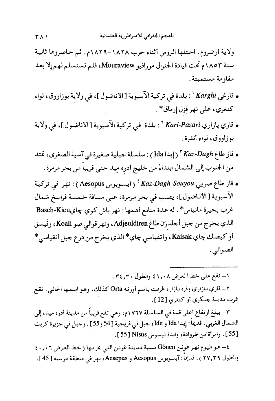 (4) هو اليوم نهر غونن نسبة لمدينة غونن التي يمر بها (خط العرض 06، 40 والطول 39، 27). قديما: آيسوبوس و، نهر في منطقة موسيه [45].