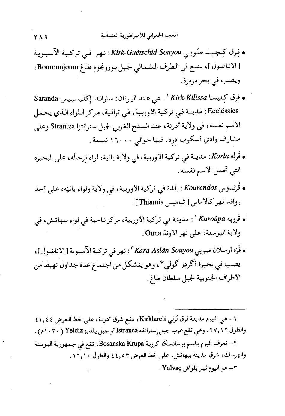 (1) هي اليوم مدينة قرق لرلي، تقع شرق أدرنة، على خط العرض 44، 41 والطول 12، 27. وهي تقع غرب جبل إسترانقه أو جبل يلديز (1030م).
