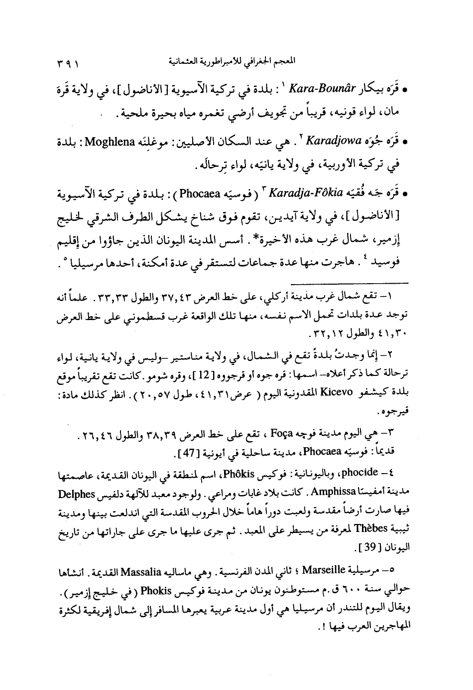(3) هي اليوم مدينة فوچهـ، تقع على خط العرض 39، 38والطول 46، 26.