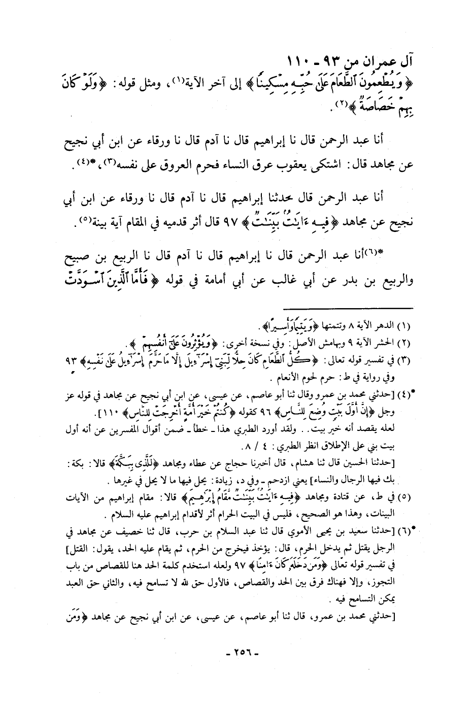 أنا عَبْدُ الرَّحْمَنِ، قَالَ: حَدَّثَنَا إِبْرَاهِيمُ، قَالَ: نا آدَمُ، قَالَ: نا وَرْقَاءُ، عَنِ ابْنِ أَبِي نَجِيحٍ، عَنْ مُجَاهِدٍ، {فِيهِ آيَاتٌ بَيِّنَاتٌ} [آل عمران: 97] قَالَ: «§أَثَرُ قَدَمَيْهِ فِي الْمَقَامِ آيَةٌ بَيِّنَةٌ»