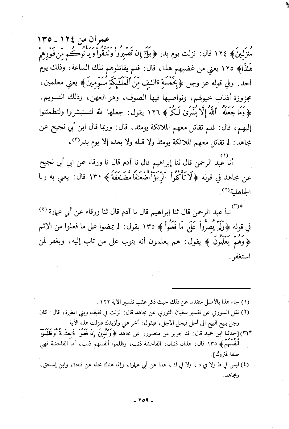 أنبأ عَبْدُ الرَّحْمَنِ، قَالَ: ثنا إِبْرَاهِيمُ، قَالَ: نا آدَمُ، قَالَ: ثنا وَرْقَاءُ، عَنْ أَبِي عُمَارَةَ فِي قَوْلِهِ: {وَلَمْ يُصِرُّوا عَلَى مَا فَعَلُوا} [آل عمران: 135] يَقُولُ: " §لَمْ يَمْضُوا عَلَى مَا فَعَلُوا مِنَ الْإِثْمِ {وَهُمْ يَعْلَمُونَ} [آل عمران: 135] يَقُولُ: «هُمْ يَعْلَمُونَ أَنَّهُ يَتُوبُ عَلَى مَنْ تَابَ إِلَيْهِ , وَيَغْفِرُ لِمَنِ اسْتَغْفَرَ»